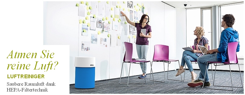 Die Luft in unseren Innenräumen ist oft erschreckend schlecht: Staub, Pollen und Allergene, Viren und Bakterien, Pilze (Schimmel), unangenehmer Geruch. Die neuen Luftreiniger von Ideal filtern diese Belastungen nahezu vollständig aus und ionisieren die Umgebungsluft. Spüren Sie den Unterschied!